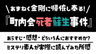 創作全般 『町内会死者蘇生事件』あらすじ・感想・どういう人におすすめ? ミステリ(作り話)に道徳を強く持ち込むタイプの人でなければ、楽しみやすい作品。1冊で満足感を得たい人には、おすすめのミステリだと個人的には思いました。 2025.10.06 創作全般