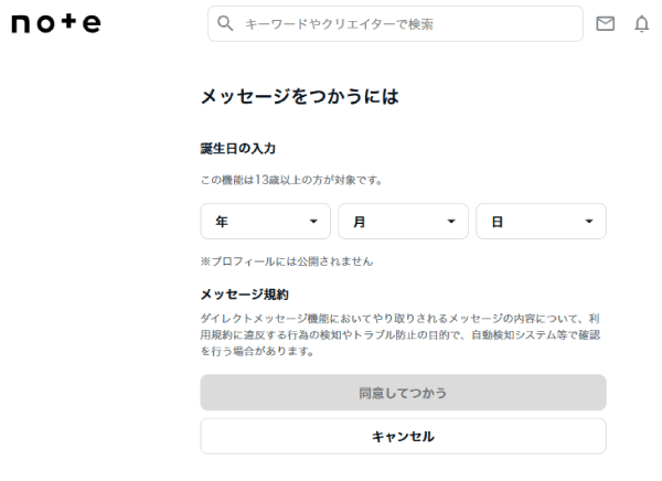 noteにアカウントを持っているユーザーにメッセージを送りたいが、方法がわからない